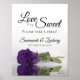 Denna vackra poster eller skylt är perfekt för en behandling av bord på bröllopsmottagningen. Den har en enkel men ändå elegant utformning med skript och ett foto av en enda långdragen djup royal lila färgad ro speglad i bassäng i vatten. Tecknet lyder: Kärlek är Sweet, ta ett kontrakt! Det finns utrymme för namn och bröllop-datumet nedan.