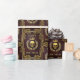 Mörk lyxröd läderförpackning papper med royal gothic guld-relief med hotande guldskalle flankad av en lagerkrans med gyllene löv och slutligen en gloriös guldsillning med bländande ljus som symboliserar ett gammalt royal. Perfekt för en royal-temad födelsedag eller helgdag med en regal gotisk beröring. Den perfekt som är papper för älskare av all mörk och gotisk, arkan, häxkonst och makaber skräck.