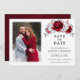Royal Red White Silver Metallic Blommigt Bröllop Spara Datumet