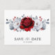 Elegant kunglig röd vit silver tema bröllop spara datum vykort med elegant bukett av kunglig rubinröd, karmosinröd, silver, rent vit färg rosblommor knoppar och eucalyptus blad. Vänligen kontakta mig för hjälp med anpassning eller om du behöver någon annan produkt med denna design.