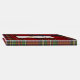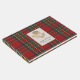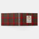 Höglandsbröllop inspirerad gästbok gjord i det klassiska röda, gröna, blå, gula, svarta och vita Royal Stewart tartan rutmönster. Ett guldbelagt textområde på framsidan av boken har grafik av en gyllene tistel och svart anpassad text redo att anpassas.
