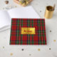 Gästgäst med alla användningsområden, bok i det klassiska röda, grönt, blått, gult, svart och vitt Royal Stewart tartan plaid mönster. Ett textområde med guld, längst fram i bok, har redo med röd anpassningsbar för att anpassa sig.