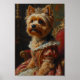 En elegant kunglig porträtt som visar Yorkshireterriern som en viktoriansk prinsessa. Inspirerad av klassiska europeiska oljemålningar framhäver designen hundrastens långa silkeslena päls och charmiga uttryck med lyxiga aristokratiska kläder och juvelbesatt tiara.