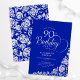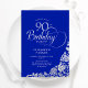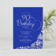Enkel elegant 90:e födelsedagsfest inbjudan i royal blå och silver. Klassdesign med ro, faux silver-folie och typsnitt för typsnitt. Trendig inbjudan-kortets perfekt för en snyggt kvinnlig dag firande. Anpassa med dina egna detaljer. Kan anpassas till vilken ålder som helst. Skrivna Zazzle-inbjudningar eller digital utskrivbar mall för omedelbar nedladdning.