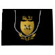 En elegant svart och guld monogram royal med guld vintage krona, sköld och löv. En vacker design som innehåller både modernt och manusskript. Perfekt födelsedagspresent, daghemsdekoration, barnrumskonst, hemdekaler, Julklapp eller gåva till något annat särskilt tillfälle. Anpassa monogrammet och gör det till ditt eget.
