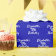 Royalets blå bakgrund, vit text. Anpassa och lägg till namn och ålder. Ett modernt handskript i stil.