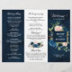 Mörk Blått blommigt Tri Fold-kort för bröllopsprogram med elegant bouquet av marinblått, royal blått, vitt, ro och seage grönt eucalyptus löv. Kontakta mig om du behöver hjälp med anpassning eller om du behöver någon annan produkt med den här designen.