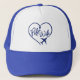 Det marinerade manuset ord "Pilot Wife" inuti ett vitt, loopat hjärta med silhuetten från ett flygplan efter hjärtflödet på ett Royal och en vit truckerkeps. Det här är en underbar gåva till dig själv (om du råkar vara en stolt pilotfru) eller till en vän. Det här är ett färg-tryck, hela marinen bläck. Välj från en mängd hatt färg!