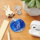Elegant silver glitter med gnistor mot en faux-kobolt eller royalets blå, penselformad bild av metallen. Det vita finare-kalligrafimonogrammet i finare i mitten kan anpassas. Du kan t.ex. lägga till ett namn i samma teckensnitt eller kanske Underbara symboler. All sparsam och glansig inslag i denna moderna gigantiska design är digital grafik. Monogrammed värdefull cirkel formar nyckelring party favors för hennes speciella födelsedag.