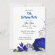 Fantastiskt royal blått ro och liljor med silver ro och daisy blomman botaniska silver födelsedagsfest inbjudan . Uppgifterna om glitter simuleras