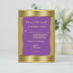 Modern Lila- och Guld-kortdesign för Royal. Det kommer att ge ge en unik beröring till dina bröllopsinbjudningar. Var annorlunda! Använda Anpassa verktyg om du vill lägga till information, gör ändringar. Matchande objekt som Spara datum, OSA, postorderartiklar, är min Matron of Honoring, Flower Girls, Bridesmaid, Jr. Bridesmaid-inbjudningar och mer, även tillgängliga. Allt detta finns i mitt Royal Lila och Guld Bröllop Samling.