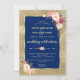 Royalets marinblå Blommigt Guld Bröllop Inbjudningar