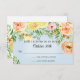 RSVP-svarskort | nymålad akvarellkonst i en lös, målerisk modern stil. Mjuk himmelsblå bakgrunds färg framhäver de varma färgerna gula, persika och rosafärgade blommor färska ur en botanisk trädgård med samlade blad och lövverk. Upphovsrätt, Audrey Jeanne Roberts.