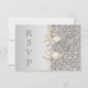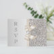 Eleganta anpassade silver- och ljuschampagne-svarskort med vacker tryckt silverpaljettmönster, en söt glänsande lila tryckt rosett och band och vacker tryckt diamant-bling juvel. Dessa klassiska, glamourösa, moderna platta kort är dekorerade på båda sidor. Vackra, chic, trendiga, moderna inbjudningar. OBS: Dessa är platta tryckta bilder - inga riktiga rosetter, paljetter eller upphöjda delar. Text, teckensnitt och teckensnittsfärg kan alla anpassas. Om du behöver hjälp med att anpassa din produkt, vänligen kontakta mig via min butik. Jag hjälper gärna till. Jag har matchande produkter i min butik.
