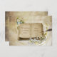 Gammalt bok med fjäderpenna och blommor för bröllops-RSVP.