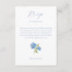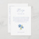 Elegant och chic blå hortensia RSVP bifogad kort, med en vacker blommig design tillsammans med gästens måltidsval, närvaro, svarsdag, parets namn, webbplatsadress för bröllopet och favorit sång. Kortet ger bekvämt plats för 2 gästnamn och deras respektive val. Detta kort är stilfullt, elegant med ungdomliga undertoner och dammig blå typsnitt. Denna artikel är en del av en brölloppsserie som inkluderar inbjudningar och andra produkter. Anpassa för att göra den till din egen.