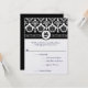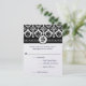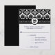 Svart och vit blomsterdamaskmonogram RSVP-svar med menyval. Perfekt för medeltida eller renässansbröllopsteman eller viktorianska bröllop.