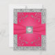 Detta varma rosa och falska silverfolie (tryckta effekter) blomster-RSVP-kort med ett fuchsia TRYCKT band och falskt graverad silvermedaljong matchar vår- eller sommarbröllopsinbjudan som visas nedan. All text är anpassningsbar och likaså valet av papper. Om du behöver hjälp med att anpassa detta kort, eller om du behöver andra matchande föremål i samma design, vänligen maila din förfrågan till niteowlstudio@gmail.com.