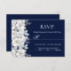 RSVP-kort vit blomma sakura marinblå OSA Kort