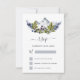 Rustika Berg Skog Vattenfärg Vår Bröllop RSVP Inbjudningar på vit bakgrund - inkluderar vacker och elegant skrifttyp med moderna botaniska blad, bär och grönska för den speciella bröllopsdagsfirandet.
