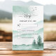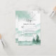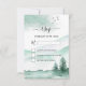 Rustika Berg Skog Vattenfärg Vår Bröllop RSVP Inbjudningar på vit bakgrund - inkluderar vacker och elegant skrifttyp med moderna gröna berg, fåglar, tallar och grönska för den speciella bröllopsfesten.