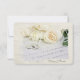 Bröllopsvita rosor med silverbröllopsringar och pärlor på bröllopsklänning satin bakgrund för bröllop RSVP.