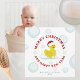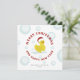Illustration av en gult gummi anka som bär tomhatt omgiven av bubblor. Anpassa baksidan med fotot på baksidan.