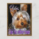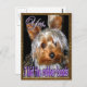 Yorkie Owners har alla att göra med det här utseendet. Skulle du gå ut utan att ditt hår är gjort? Se vem som har gömt gummibanden för att undvika en toppknut. Du kan ändra färg på kortets baksida och ta bort alla objekt där när du redigerar om du vill att det ska vara tomt.