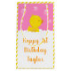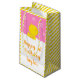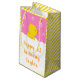 Den här söta och roligt presentpåsen kan vara personlig med namn eller titel, som dotter, barndotter, brorson, brorson, vän osv. Den har en ljuvlig gult anka i vita soapy-badbubblor på en ljus rosa bakgrund med ett orange band och gult rand. Texten kombinerar handskript och sans serif typsnitt för en snyggt och ett modernt utseende.