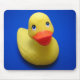 Ett gult rubber ducky på en kunglig blåttbakgrund