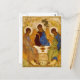 Antique Andrei Rublev-teckning/ikon som skildrar Far, Son och Heliga Ghost som sitter i bord. Bilder verkar ha ängel vingar.