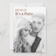 Med en modern typografi sparar du datumdesignen med ett lodrät eller ett foto som är orienterat efter utfall i fullt, med dina bröllop-detaljer justerade överst. Ditt bröllop-datum, "Det är ett datum", visas på namn och bröllop i tontal och terracotta-bokstäver. Lägg till mer information, som din bröllop webbplats, längst bak.