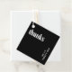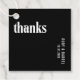 Modern märkre för bröllopsförmåner med enkel och minimal design med "tack" i fetstil, vit typografi över svart bakgrund. Färg kan ändras till valfritt färg som du väljer i verktyg för designredigering. Baksidan har ditt personlig-meddelande. De här contemporaryns bröllopsfavoriter är underbara för en goth eller halloween-temat bröllop.