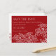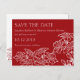 Skicka ett slående spara-datum-postkort som inte försvinner i högen av post. Blommor med vita konturer sticker ut mot en djup karmosinröd bakgrund. All text kan anpassas med din egen information. Baksidan är medvetet lämnad tom för ditt eget personliga meddelande eller lämna den tom för att skriva adressen. Finns i alternativa färger med matchande produkter.