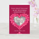 Anpassa detta rubin bröllopsjubileumskort med dina föräldrar, foto, äktenskapsår och innerord. Exempeltext: Kära mamma och pappa på er rubinbröllopsdag 25 maj 1984 till 2024. Röd rubinhjärta effekt konst och design av Sarah Trett.