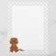 Desteis ursprungliga tecknad illustrerar en söt ruby färg Cavalier Kung Charles Spanska rasen hund som är sitta. Mitten är vitt medan gräns har en mönster av grått tass avtryck.