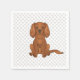 Desteis ursprungliga tecknad illustrerar en söt ruby färg Cavalier Kung Charles Spanska rasen hund som är sitta. Bakgrunden har mönster i grått hund tass avtryck.
