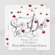 Ruby Red Heart-konfekti med "Save the Date" i finare Script Calligraphy - redo att vara personlig med information om ditt bröllop-datum