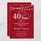 Inbjudan till Firande på 40-årsdagen Bröllop. Ruby red and white design med fairy string ljus och elegant script font. Skål till 40 år! Kan vara personlig in i vilket år som helst i giftermål! Berätta om du behöver anpassa dig ytterligare.