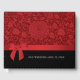 En gäst bok med en romantisk rödbrud blommigt brocade mönster och ett rött satin-utseende. En perfekt blandning av opulens och romantik. En elegant som håller minnet av de gäster som närvarade vid din Bröllopsdag.