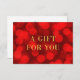Presentkort med ord "A Gift for You" i faux guld mot en ruby red bokeh ljus mönster på framsidan. Anpassa det här kortet med dina uppgifter genom att ersätta platshållartexten. Om du vill ha fler alternativ, t.ex. att ändra teckensnitt, storlek text / färg eller mellanrummet mellan brev, klickar du på knappen "Anpassa". *Observera att Zazzle Watermark som visas i zoomförhandsvisningen INTE visas på den färdiga tryckta produkten. © Rosewood and Citrus