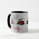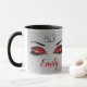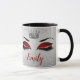 Denna förbluffande ruby Red Glitter Ögon Monogram Mugg har en Silver drottnings Krona och ett par öga lock med Ruby Red glitter eyeshadow, diamantéeffektstomme med långa svarta utslag på silver glitter. Anpassa till namn efter ditt val för att matcha Ruby Red. Designad av Jacqueline.