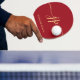 Anpassningsbar Monogram Initial Guld Namn Modern Elegant Template Ruby Red Ping Pong Paddle.