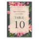 Elegant och modernt rosa peony blommigt bröllop-bordsnummer-kort med färgade vattenblommor i rosa och lush grönt foliage på chic av svart bakgrund. Lägg bara till dina uppgifter om bröllop. Om du behöver hjälp eller matchande produkter kontaktar du oss genom vår butik. Vi är lycklig för att hjälpa dig att göra bröllop till den vackraste dagen!