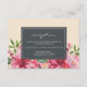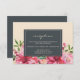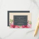 Elegant och modernt rosa blommigtens bröllopskort med målade vattenfärgade blommor i rosa och persiko- och lush-grönt mot en elfenbensbakgrund. Kortets baksida är en svart chic. Lägg bara till dina uppgifter om bröllop. Om du behöver hjälp eller matchande produkter kontaktar du oss genom vår butik. Vi är lycklig för att hjälpa dig att göra bröllop till den vackraste dagen!