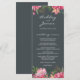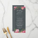Elegant bröllop-menyn med en rosa peonis-blommigt som har färgade vattenblommor och löv på en chic med svart bakgrund. Lägg bara till menyinformation för bröllop. Om du behöver hjälp eller matchande produkter kontaktar du oss genom vår butik. Vi är lycklig för att hjälpa dig att göra bröllop till den vackraste dagen!