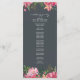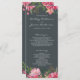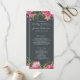 Elegant och modernt bröllopsprogram för rosa blommigt med målade vattenfärgade blommor i rosa och persiko- och lush grönt foliage, mot en chic svart bakgrund. Lägg bara till dina uppgifter om bröllop. Om du behöver hjälp eller matchande produkter kontaktar du oss genom vår butik. Vi är lycklig för att hjälpa dig att göra bröllop till den vackraste dagen!