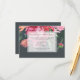 Elegant och det moderna rosa peony blommigt bröllop-informationskortet för ruby-peony med färgade vattenblommor i rosa och persiko- och lush grönt foliage, mot en chic svart bakgrund. Lägg bara till dina uppgifter om bröllop. Om du behöver hjälp eller matchande produkter kontaktar du oss genom vår butik. Vi är lycklig för att hjälpa dig att göra bröllop till den vackraste dagen!