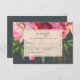 Elegant och det moderna rosa peony blommigt-kort med målade vattenfärgade blommor i rosa och persiko- och lush-grönt foliage, mot en chic svart bakgrund. Texten är på ett elfenbenstorn. Lägg bara till dina uppgifter om bröllop. Om du behöver hjälp eller matchande produkter kontaktar du oss genom vår butik. Vi är lycklig för att hjälpa dig att göra bröllop till den vackraste dagen!
