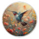 En sjudande vattenfärgskonstruktion med en ruby-throated hummingbird hoving bland delikata blommor, som fångar naturens stift och energi i blomning.
